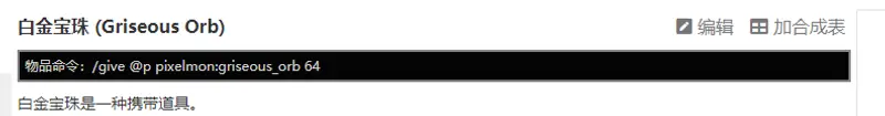 白金宝珠可以通过指令获得,/give @p pixelmon:griseous_orb 64,白金宝珠是一种携带道具。骑拉帝纳携带后,龙属性技能和幽灵属性技能的威力都会上升 20%。其他宝可梦携带没有效果。