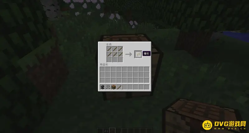3,最后将6根木棍横放在工作台中,这样就可以合成栅栏了。