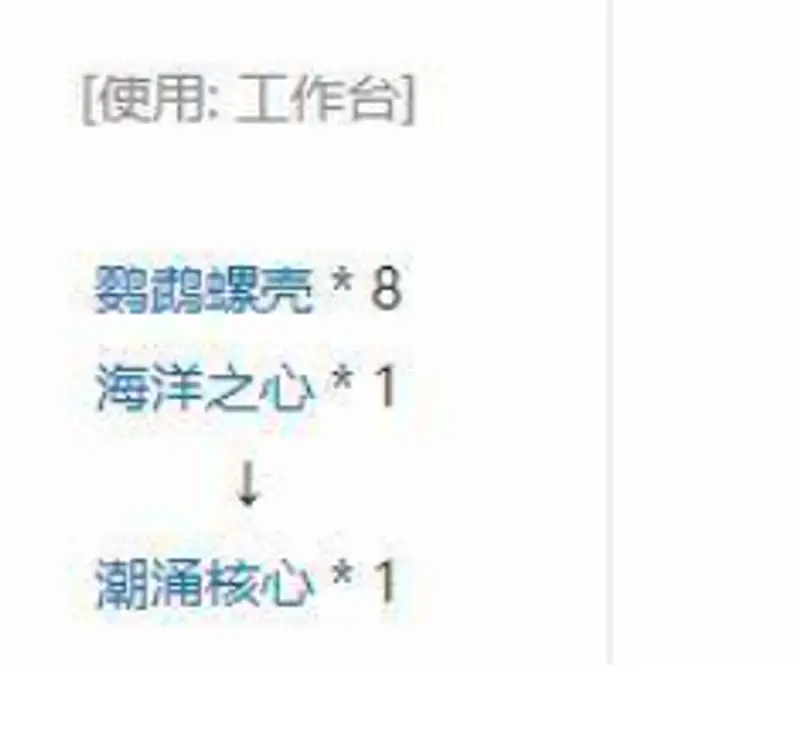 2.而合成潮涌核心的方法如下,为8个鹦鹉螺壳和一个海洋之心合成。