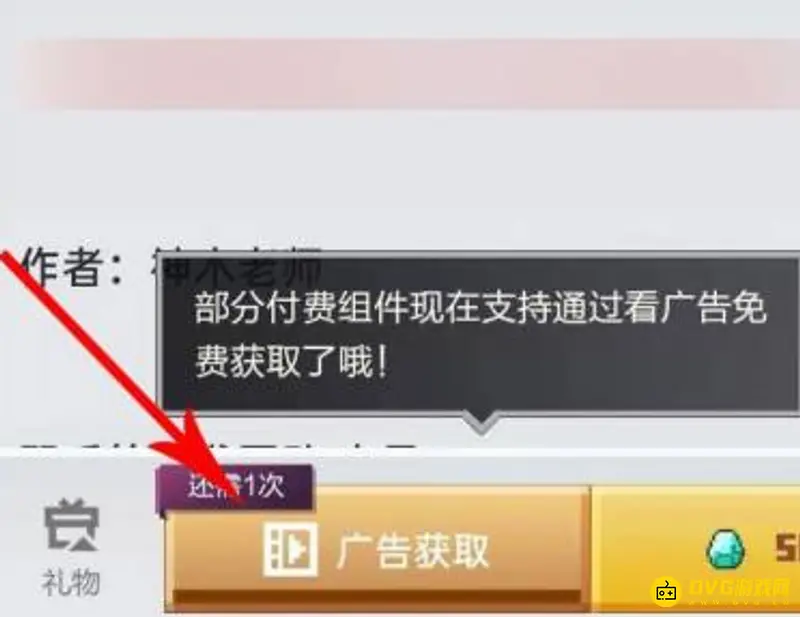 3.点击广告获取,如果不能看的话就退出重看一下,实在不行就重启一下游戏