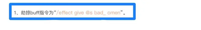 我的世界抢夺指令英文是“/effect give @s bad_ omen”。玩家可以通过击杀illager patrol leader,也就是掠夺者首领,来获得这个BUFF;获得后前往村庄会导致村庄被屠村,所以建议玩家不要前往村庄。