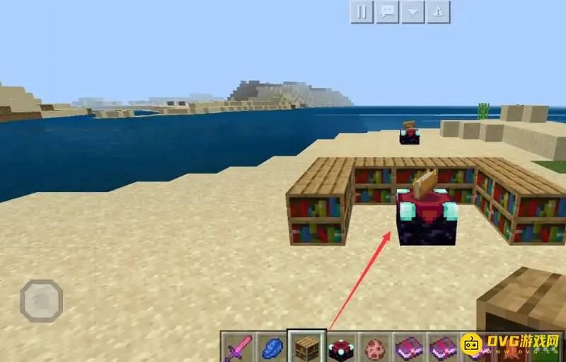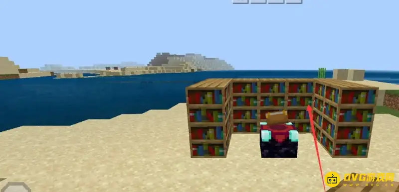 2、把附魔台放在中间,书架围绕在旁边,距离一个方块。摆放好好后,点击进入附魔界面。