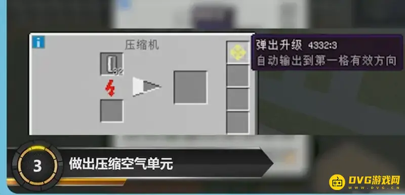 3、可做出压缩空气单元,再放上弹出升级,在高炉中放置铁和压缩空气单元。
