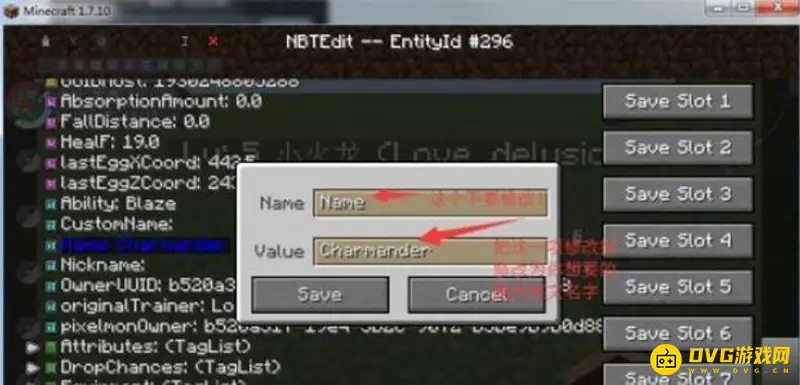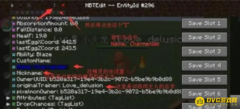 4、小火龙改成梦妖魔,那么就拉下去,找到一项Name,点上方的"I"。