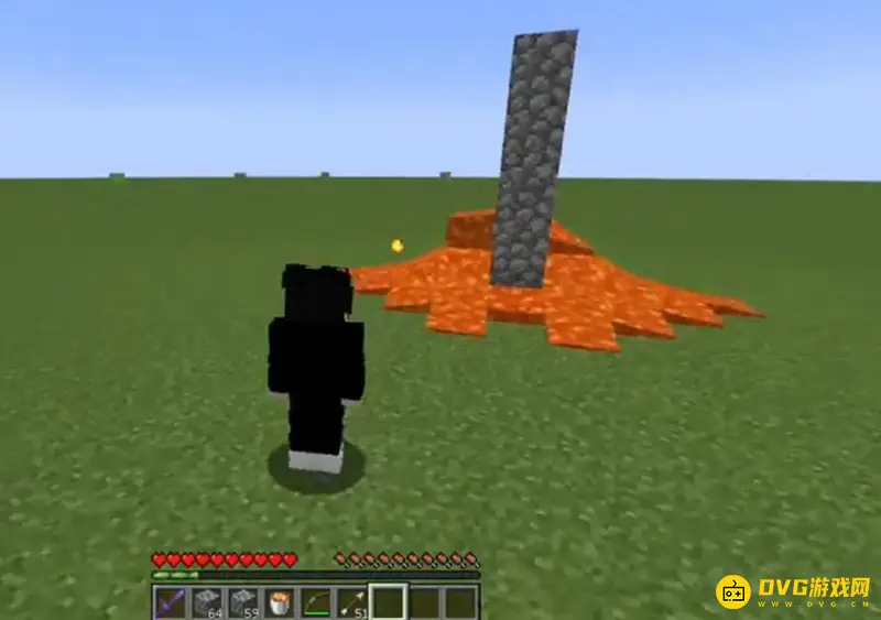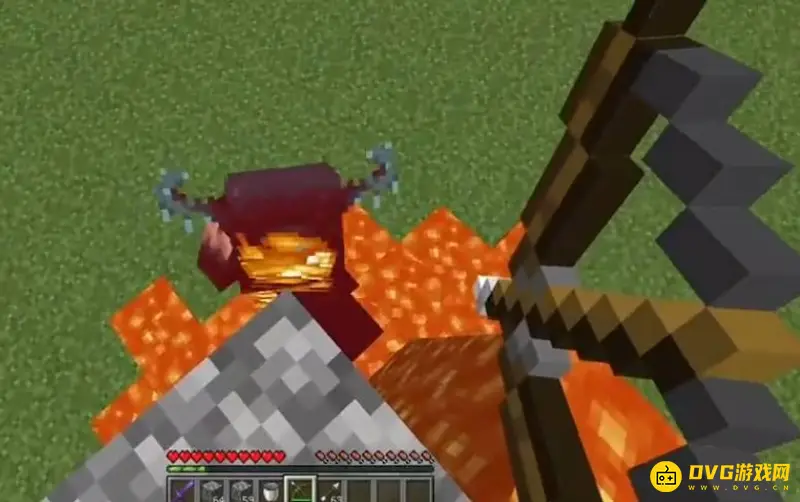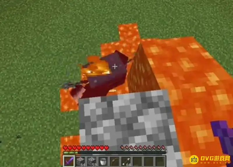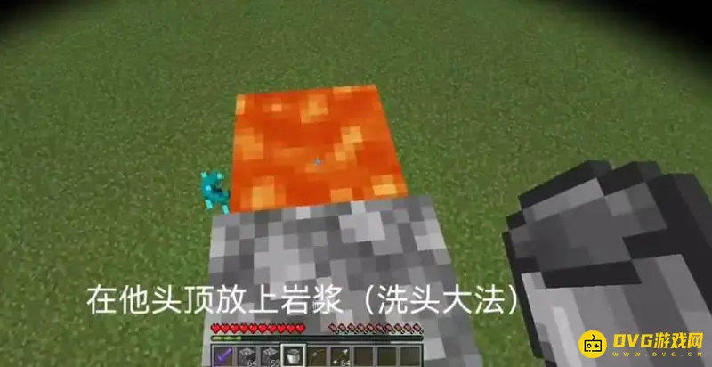 2、当循声守卫靠近我们后,我们在它头上放上岩浆。