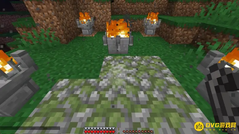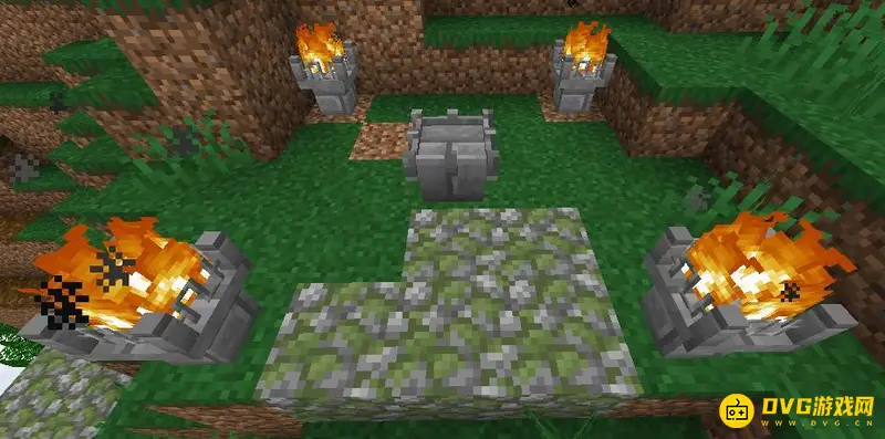 5、接着,合成一个石坛,四个石坛火碗,并摆成如下图所示的祭坛。