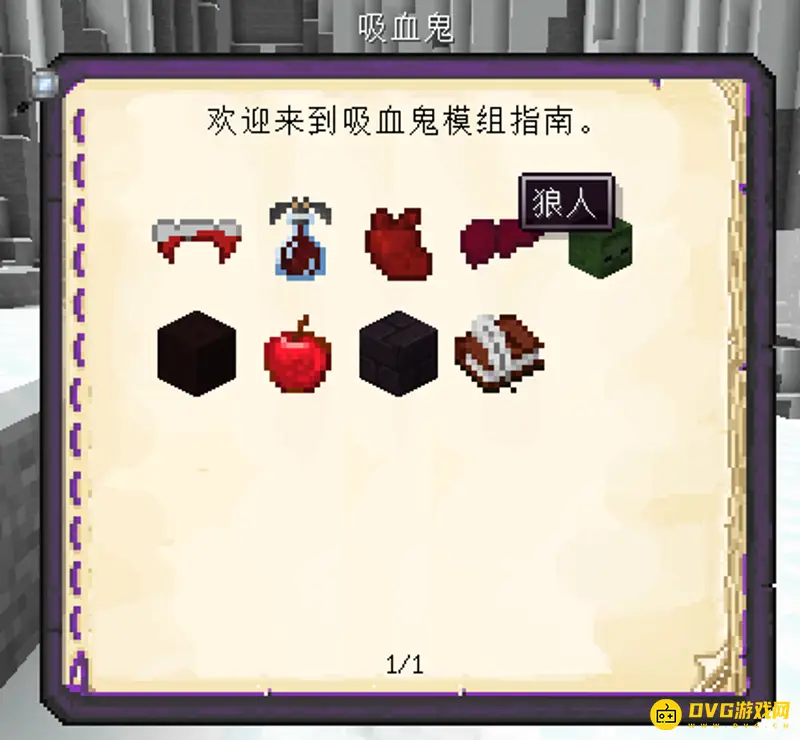 1、安装吸血鬼附属模组后,在吸血鬼指南中找到相应的狼人条目。
